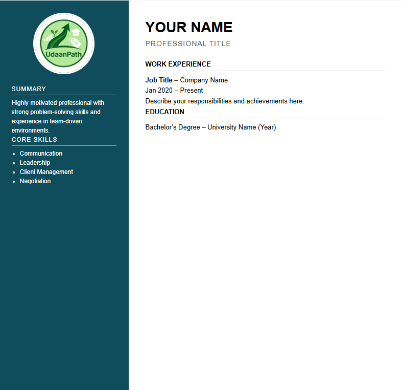 UdaanPath Resume Builder helps students, freshers and job seekers create professional resumes quickly. Instead of filling long forms, you edit the resume directly and see changes instantly.